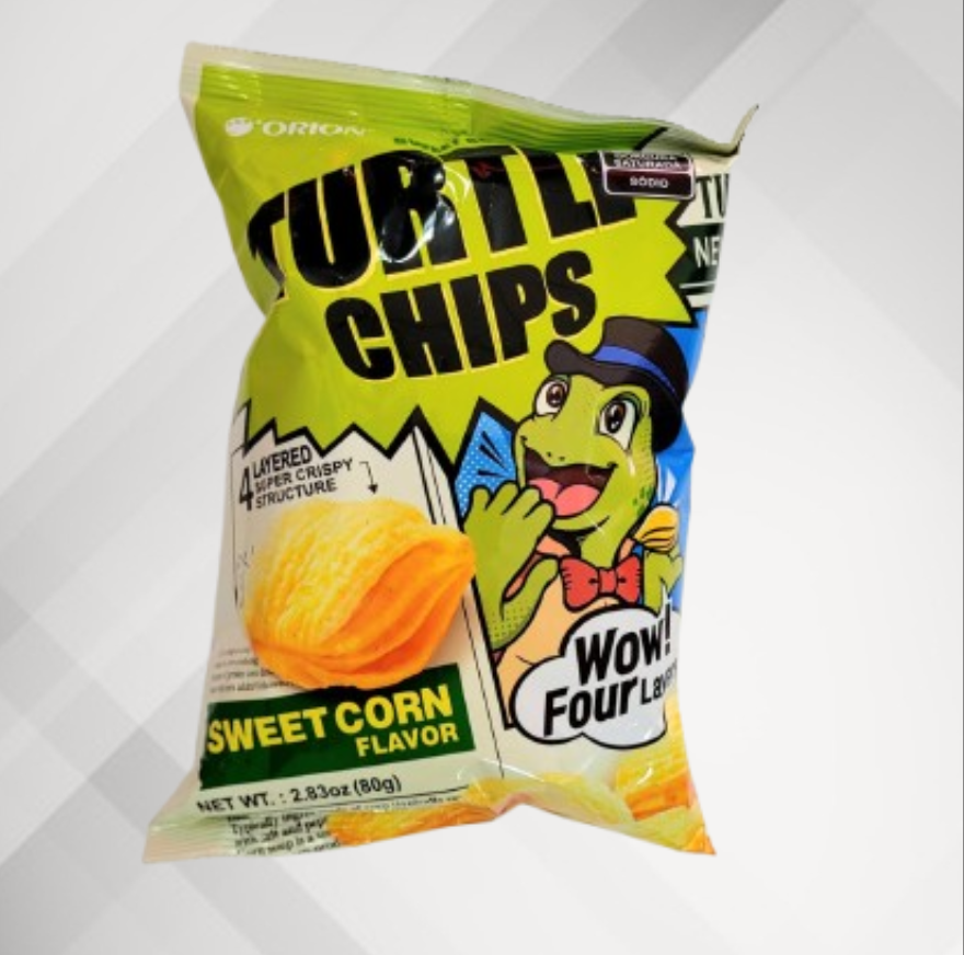 O salgadinho Orion Turtle Chips (também conhecido como Kkobuk Chip) sabor Milho Doce (Sweet Corn) é um snack coreano popular, conhecido pela sua textura única e sabor marcante.